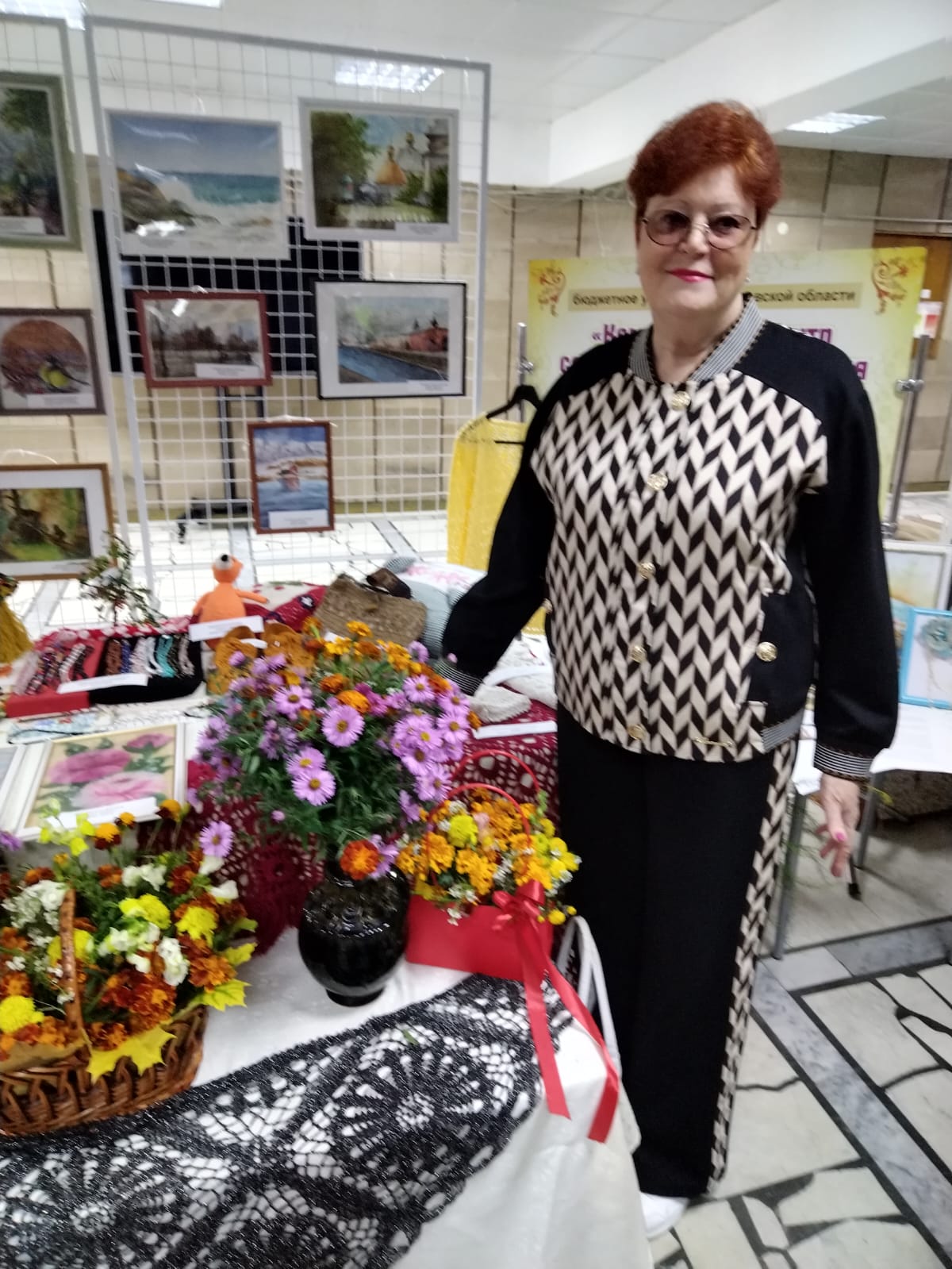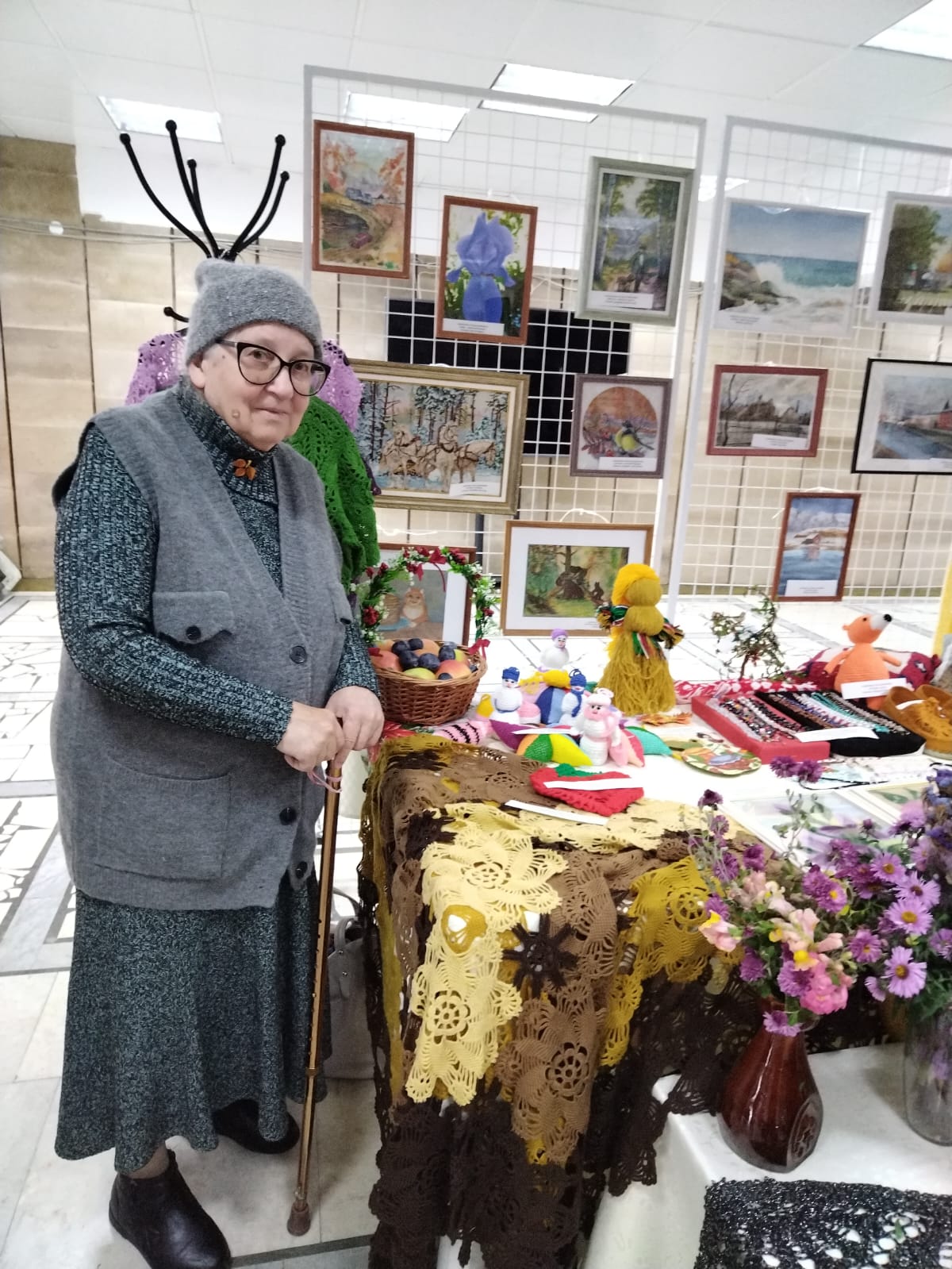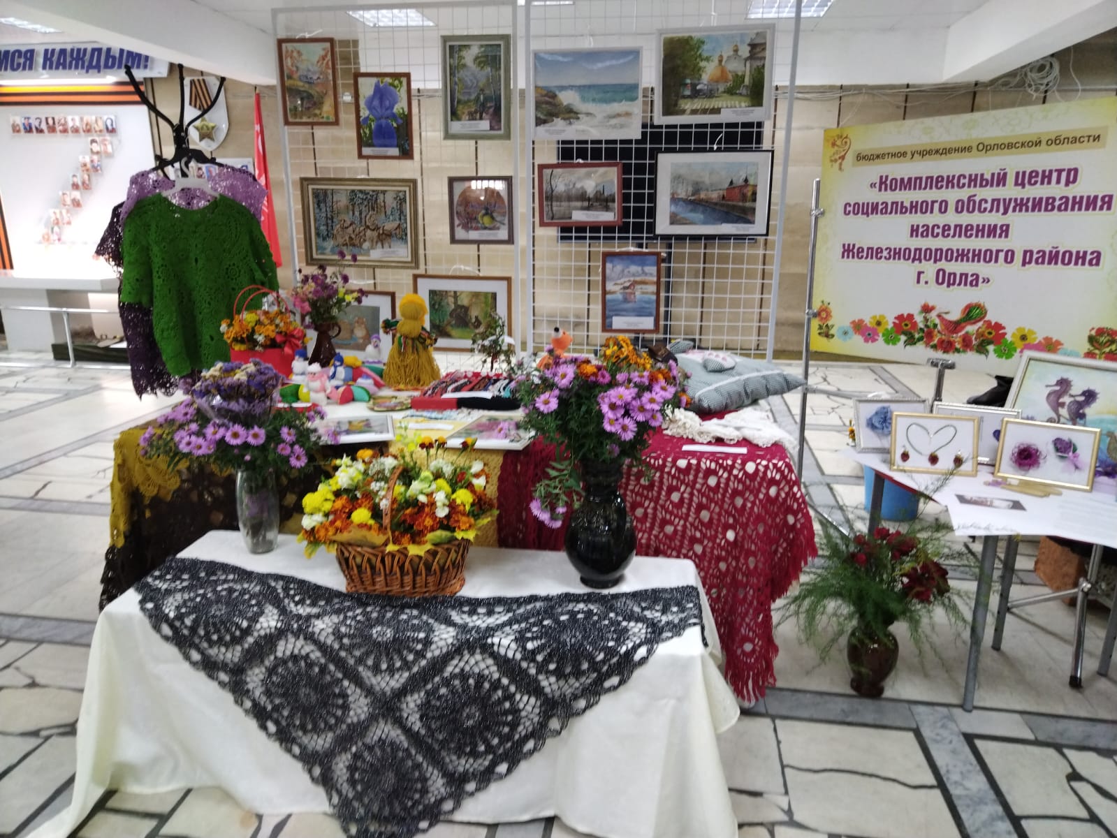 Посетители отделения приняли самое активное участие в этом мероприятии. На выставке были представлены работы наших лучших мастериц в различных техниках: бисероплетение, вязание крючком, вязание из рафии, вышивание крестиком, картины в техниках акварель и сухая пастель, вязаные игрушки. Были представлены бусы из натуральных камней, собранные вручную, картины из шерсти и многое другое.